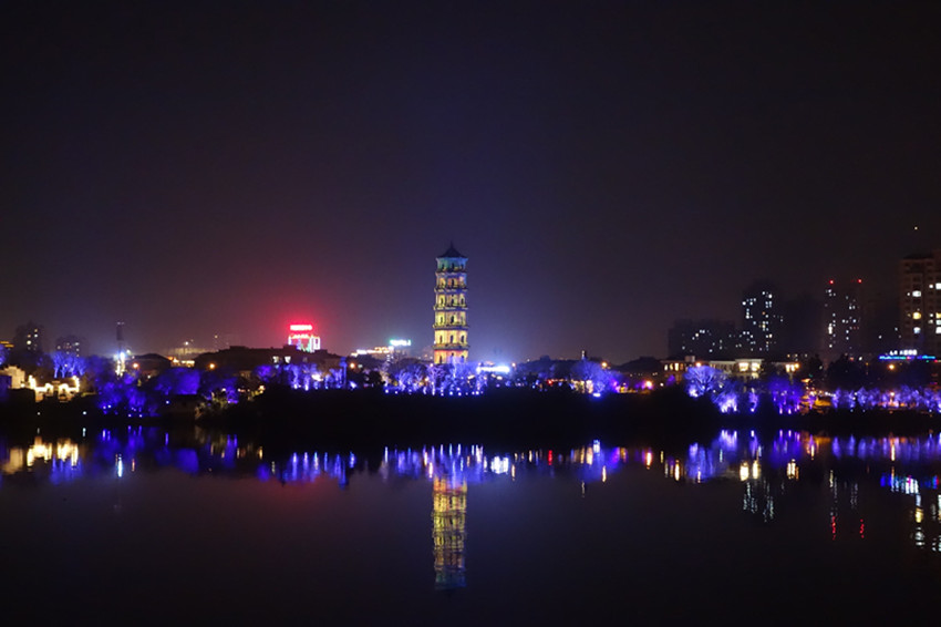 奎文塔位于望江县城东郊宝塔河边,是一座建于清代明万历间的明代风格古塔。夜幕下的江边,这座清代上饶的地标性建筑,在烟雾的笼罩下显得份外妖娆。作为国家文物保护对象的古塔,其安装环境也更加的严格与苛刻,因此DP项目团队在经过多次的商议跟讨论后最终决定采用12台DP单芯片高端激光工程投影机— M-Vision Laser 18K。分别在古塔周围用3组投影机对塔身投射,既避开了建筑物和园林,同时也保证了完美的投影成像,实现360度塔身成像效果。塔自身高40,889米,宽13米,总投影面积达531平方米。
